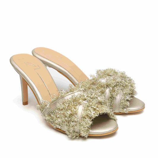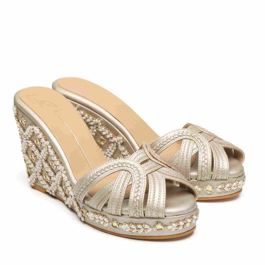 Nude Faux Leather Embroidered Kolhapuri Block Heels